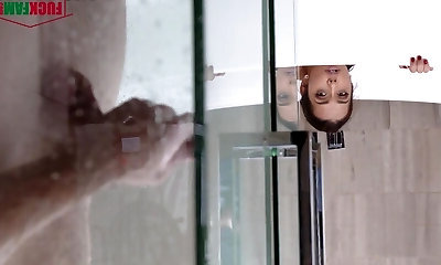 Blue eyed girl with curves is all he wants in the shower sex movie