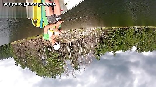 Bitchy brown-haired nymph in pinkish bathing suit Rita Jalace satiates her acquaintance with Fellatio in forest