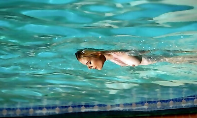 helles küken kann lange den atem anhalten, während es nackt im pool spaß hat